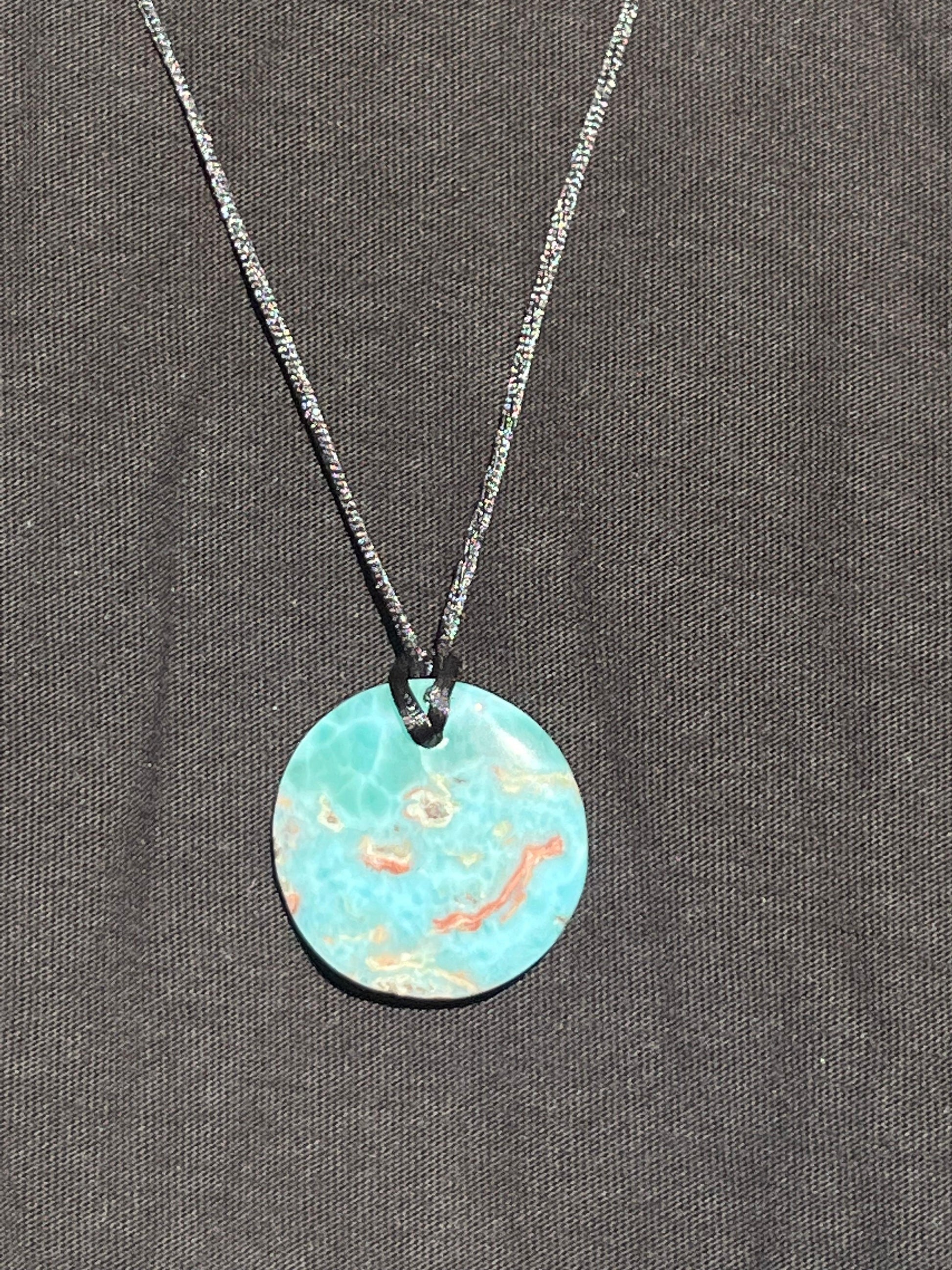 AAA Larimar Circle Pendant Necklace – Dominican Blue Gemstone, Adjustable Rope for Men & Women