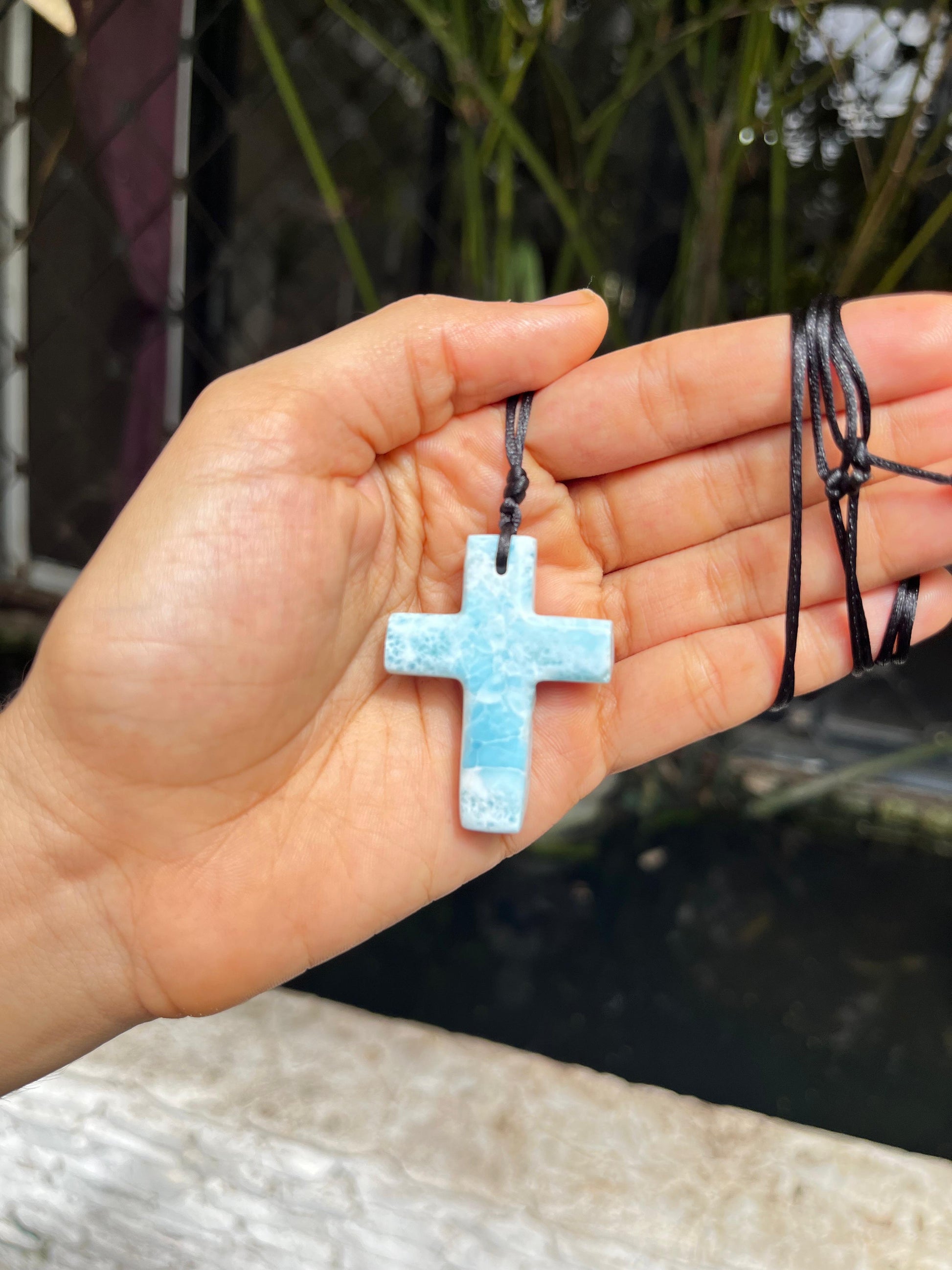 Larimar Stone Cross Necklace โ Handmade in the Dominican Republic for Men and Women