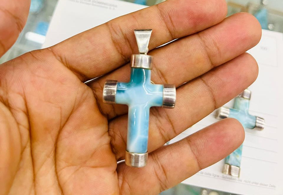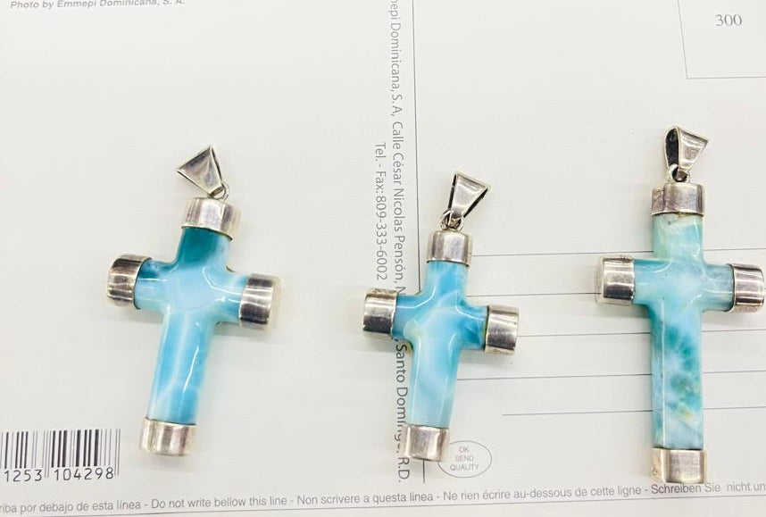 These handcrafted Larimar cross pendants are made with authentic Larimar stones, found only in the Dominican Republic. Known as the Stone that symbolizes Tranquility and Divine Connection, Larimar also promotes peace, clarity, and emotional healing.