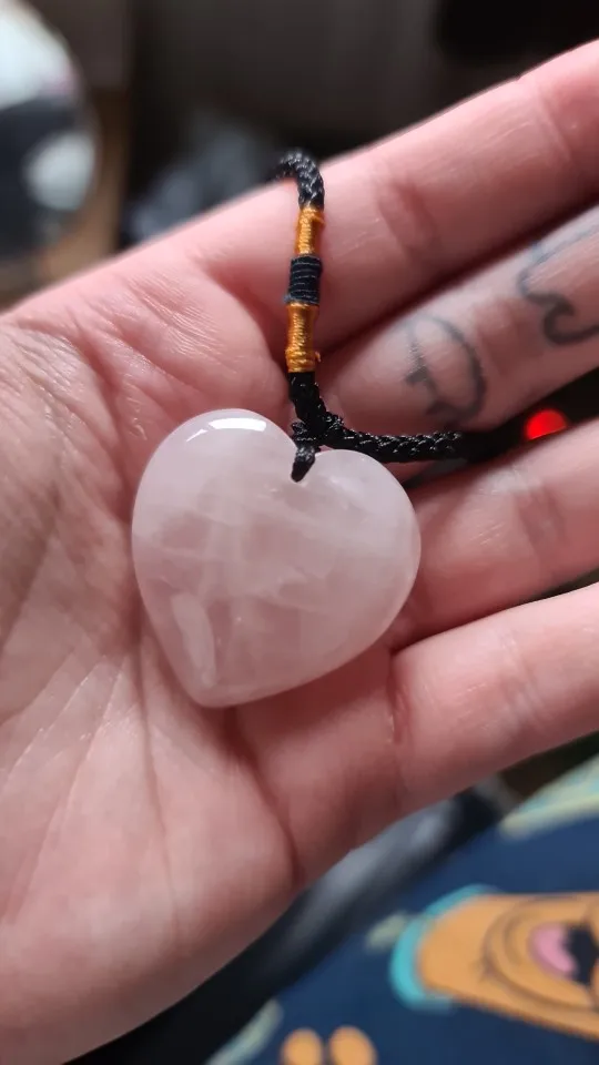 Embrace the tender vibes of Rose Quartz with this charming heart pendant—a gem that looks beautiful on everyone. Hand-polished from genuine stone, each piece has its own personality, patterns, and soft pink glow. The adjustable black rope ensures a perfect fit, whether you choose to layer it or let it shine on its own.